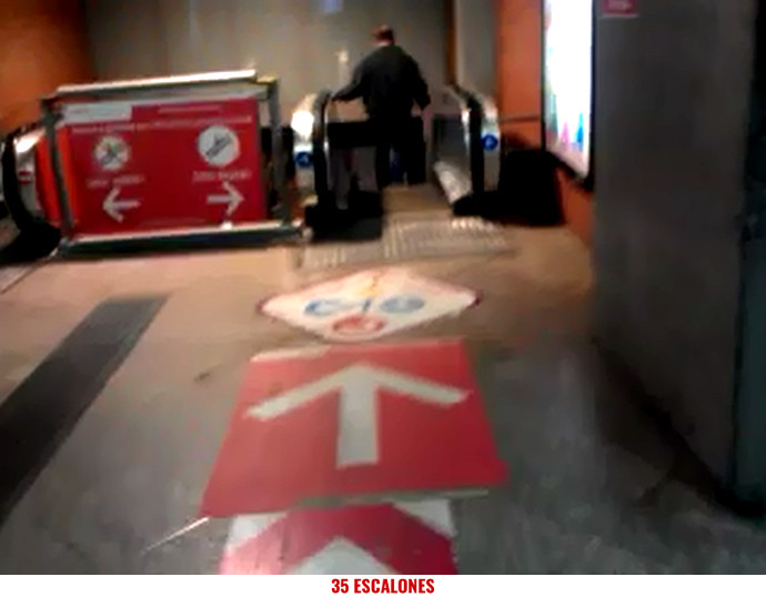 Asimismo, en el vídeo grabó cómo descendió por las escaleras mecánicas a dicho andén y, en los últimos segundos, se puede ver a un vigilante de seguridad con chaleco amarillo al pie de las escaleras. Con dicho vigilante –y otro más que apareció por allí– Carlos Pes estuvo hablando acerca de la caída que su padre (Vicente Pes) había tenido dos días antes al bajar por esas escaleras.